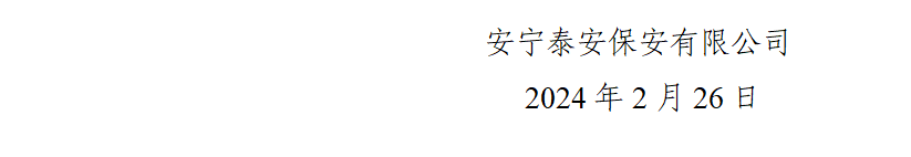 2.擬錄用人員名單將在“安寧泰安保安”公眾號(hào)進(jìn)行公示,公示時(shí)間為5個(gè)工作日,公示期間如有任何疑議,可向安寧泰安保安有限公司反映(監(jiān)督電話:68686289)