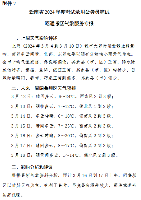 2.云南省2024年度考試錄用公務(wù)員筆試昭通考區(qū)氣象服務(wù)專報(bào)