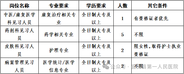 宜良縣第一人民醫(yī)院2024年招錄見習(xí)人員公告
