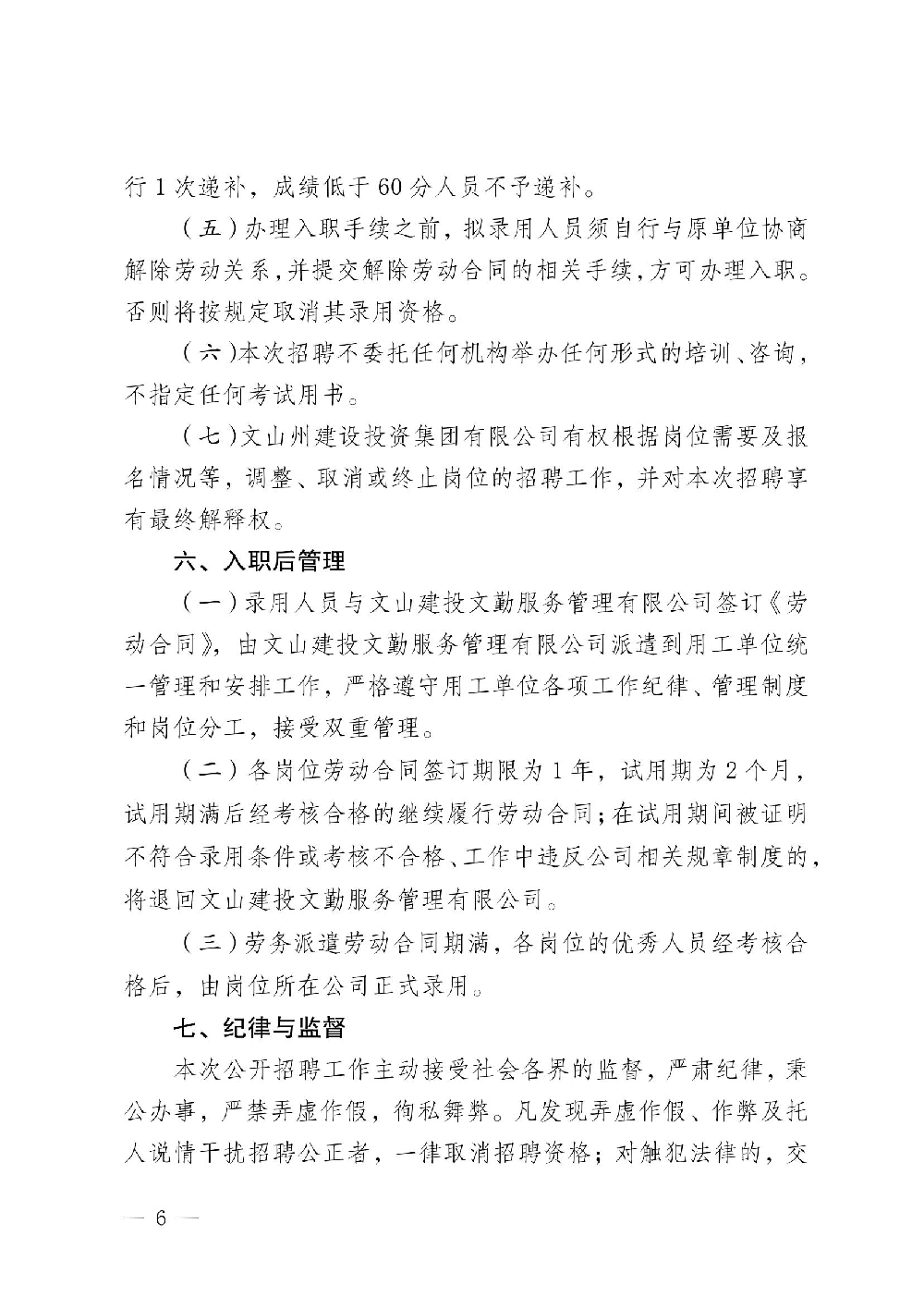 二級公司文山州交通發(fā)展有限公司2人,二級公司文山州城鄉(xiāng)建設(shè)發(fā)展有限公司、三級公司云南騰瓏檢測服務有限公司、文山恒澤水利水電工程有限公司、文山德厚水庫運行管理有限公司各1人,按成績從高到低選崗。 | 5000元左右/月(含五險) |