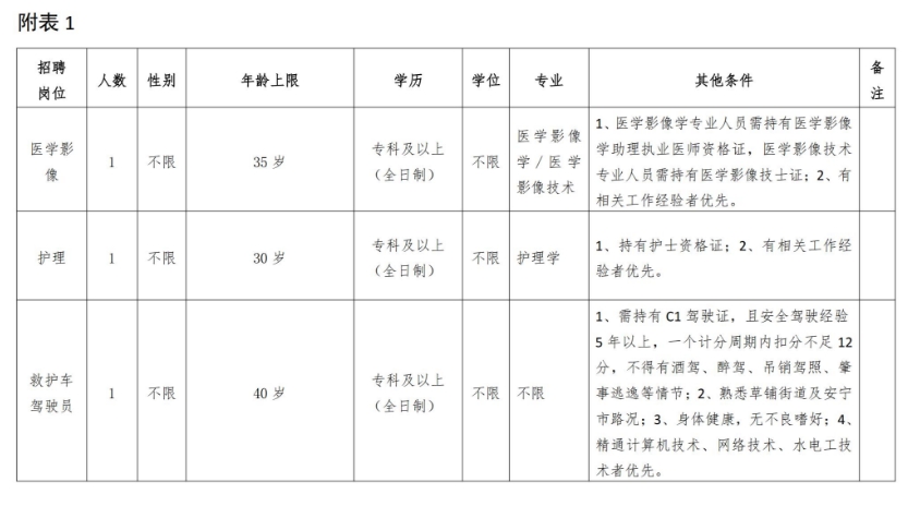 本次招聘醫(yī)學(xué)影像、護(hù)理、救護(hù)車駕駛員(含水電后勤)3個(gè)崗位,待遇按6000元/月(含社保)。