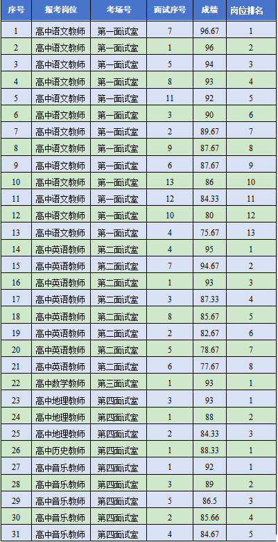 根據(jù)《昭通市彝良縣教體系統(tǒng)2024年公開(kāi)招聘優(yōu)秀緊缺教師通告》要求,彝良縣2024年公開(kāi)招聘優(yōu)秀緊缺教師面試已于2024年4月17日完成,現(xiàn)將面試成績(jī)公示如下: