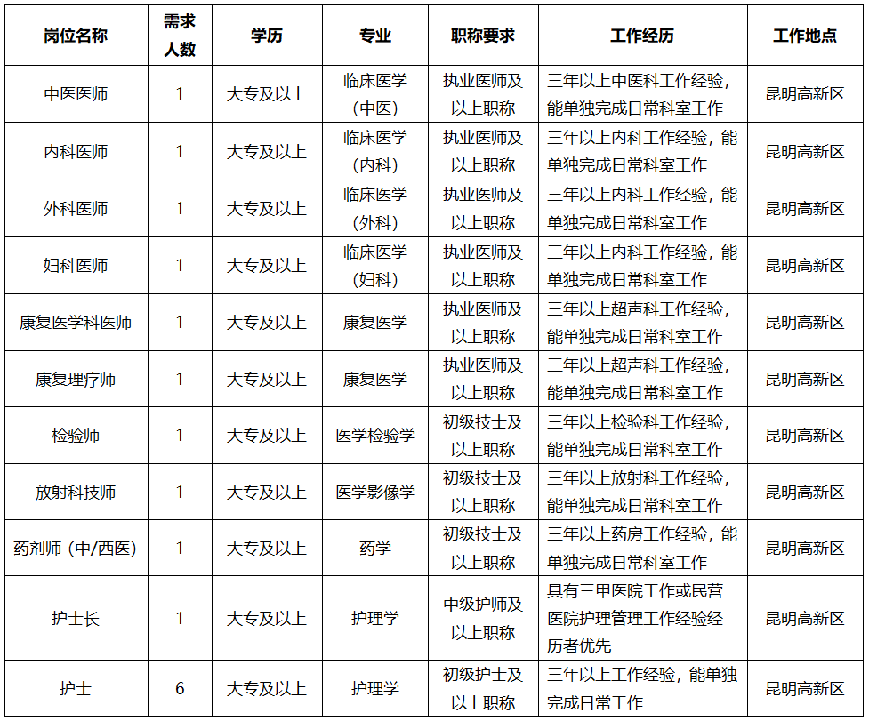 昆明分公司招聘公告