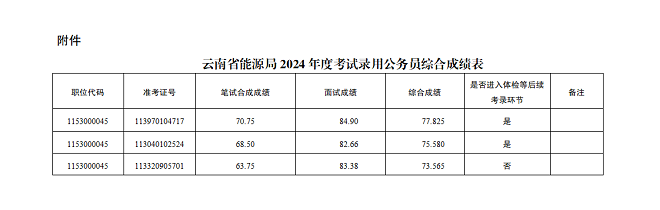 根據(jù)云南省2024年度考試錄用公務員工作安排,筆試、面試工作已經結束,現(xiàn)將報考云南省能源局公務員考生綜合成績及后續(xù)工作安排公告如下。
