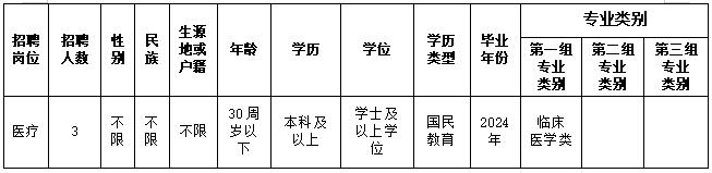 高等院校醫(yī)學(xué)類本科及以上學(xué)歷畢業(yè)后直接參加國(guó)家計(jì)劃內(nèi)住院醫(yī)師規(guī)范化培訓(xùn),2024年國(guó)家住院醫(yī)師規(guī)范化培訓(xùn)合格且具有國(guó)家執(zhí)業(yè)醫(yī)師資格,參加醫(yī)療衛(wèi)生行業(yè)招聘醫(yī)學(xué)類崗位的,視為2024年度應(yīng)屆畢業(yè)生(資格復(fù)審時(shí)須提供成績(jī)單、合格證明,否則取消聘用資格)。