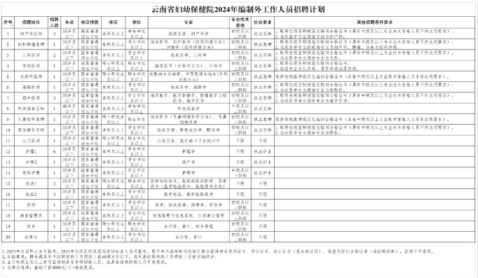 1.云南省婦幼保健院面向社會公開招聘非事業(yè)編制工作人員計劃表