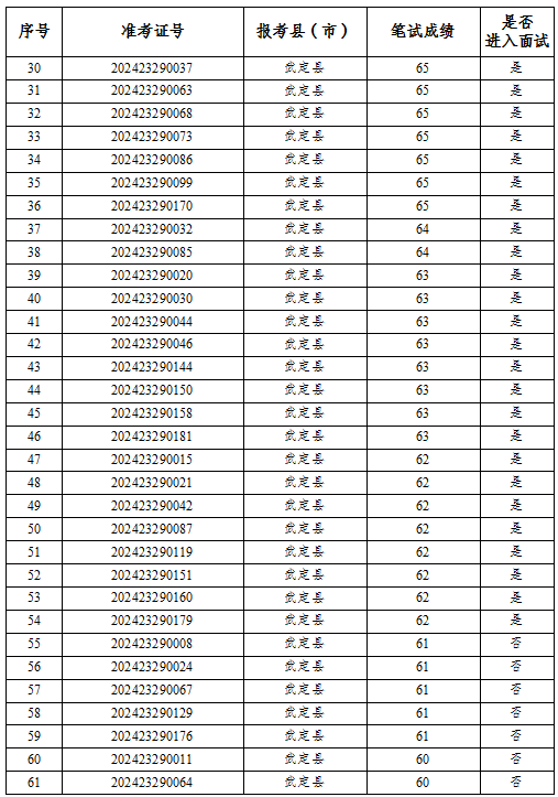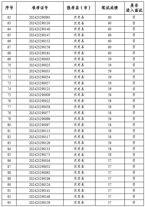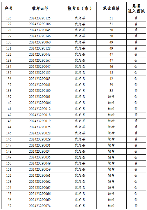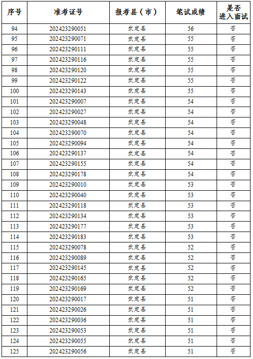 公示時間為2024年6月25日至6月27日,如考生對筆試成績有異疑,請于公示期內(nèi)向楚雄州項目辦書面提交查分申請(含報考縣市、姓名、準考證號及考生聯(lián)系電話)。若公示無異議則根據(jù)成績從高到低按照1:3的比例確定前54名考生進行資格復(fù)審,資格復(fù)審合格的考生領(lǐng)取面試通知書。