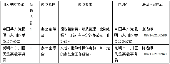 中國共產(chǎn)黨昆明市東川區(qū)委員會(huì)辦公室等兩個(gè)單位公益性崗位招聘啟事