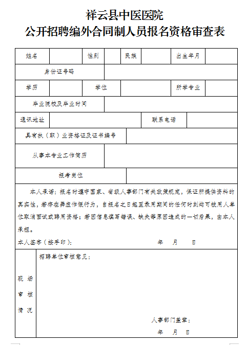 3.報名地點(diǎn):祥云縣中醫(yī)醫(yī)院人力資源管理辦公室(行政綜合樓三樓301室)。