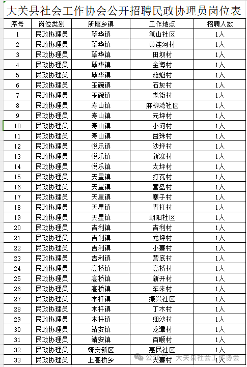 大關(guān)縣社會工作協(xié)會公開招聘民政協(xié)理員公告