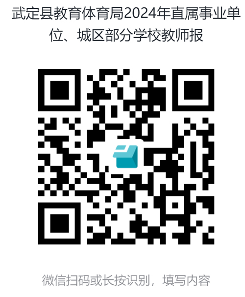 (三)報名方式:本次考試采取網(wǎng)絡報名方式進行。報名人根據(jù)各崗位條件要求掃描公告后面二維碼進行報名,下載并填寫《武定縣2024年教師招考流動報名表》,報名時按要求上傳經(jīng)工作單位審核簽字確認的報名表、身份證、最高學歷畢業(yè)證、教師資格證、普通話等級證書、近五年履職考核證書、崗位任務、表揚表彰獎勵(時間節(jié)點是2019年8月1日至2024年7月31日,以落款為準)等證明材料PDF文檔。