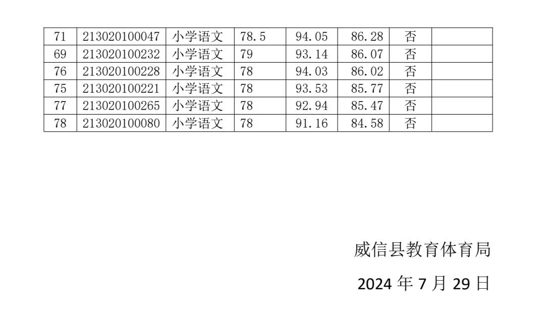 威信縣教育體育局 關(guān)于2024年中央特崗教師招聘面試成績及后續(xù)相關(guān)工作的通告