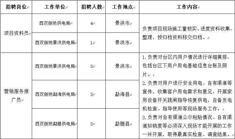西雙版納供電局及所屬縣級(jí)供電企業(yè)項(xiàng)目制用工招聘公告