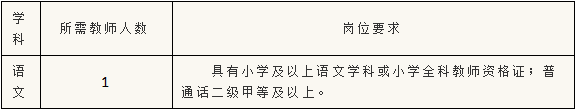 崗位要求:具有小學及以上語文學科或小學全科教師資格證,普通話二級甲等及以上。