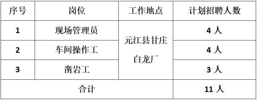 元江縣天力礦業(yè)有限責(zé)任公司招聘簡(jiǎn)章