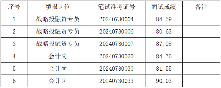 根據(jù)《西雙版納國有資本投資運(yùn)營集團(tuán)有限公司2024年公開招聘公告》規(guī)定?,F(xiàn)將西雙版納國有資本投資運(yùn)營集團(tuán)有限公司2024年公開招聘面試成績進(jìn)行公示。