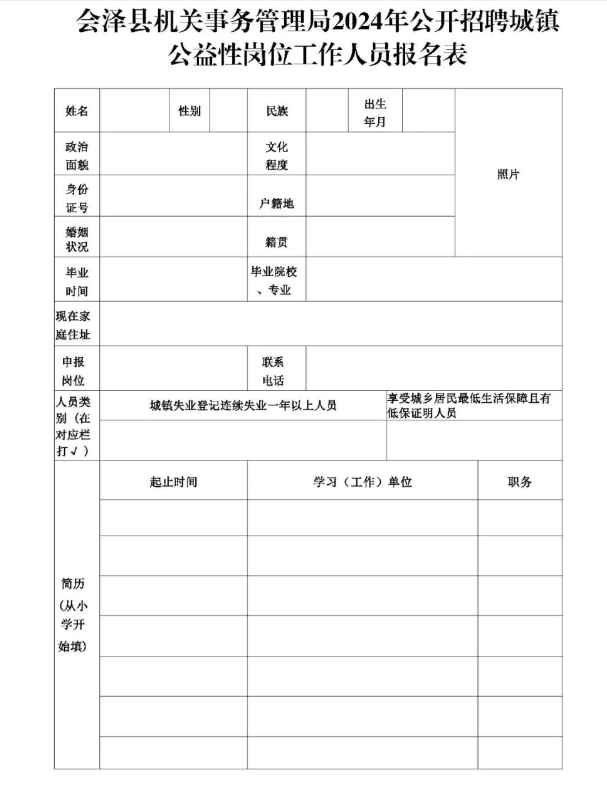 會澤縣機關事務管理局 關于2024年招聘城鎮(zhèn)公益性崗位工作人員的公告