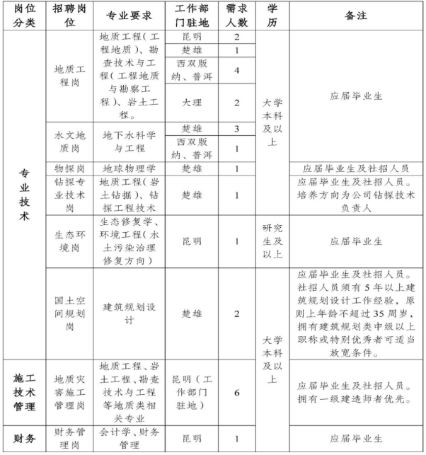 備注:經云南地質工程第二勘察院有限公司組織人事部同意昆明市公共就業(yè)和人才中心發(fā)布本信息。