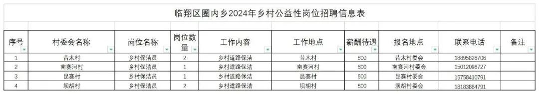 附件 臨翔區(qū)圈內鄉(xiāng)2024年鄉(xiāng)村公益性崗位招聘信息表.xlsx