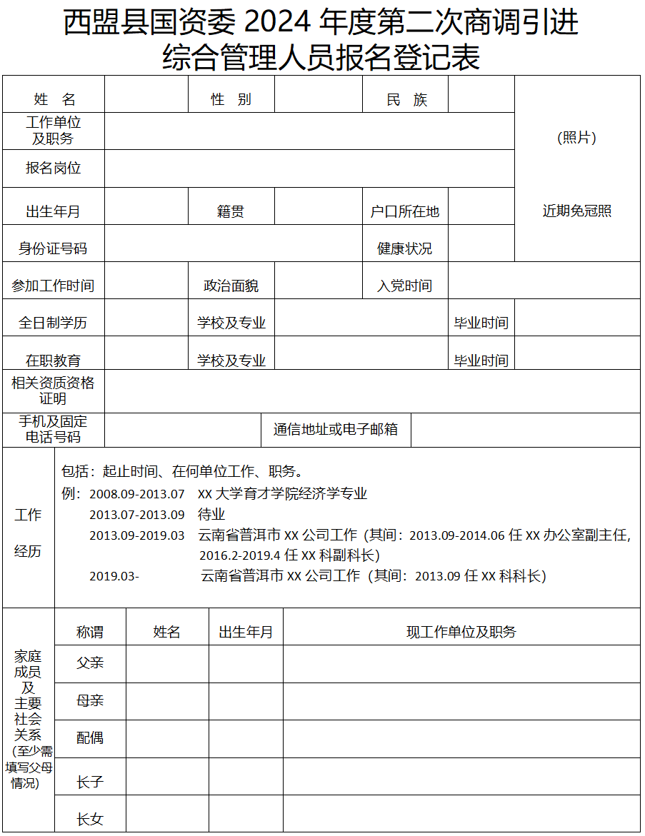 2.西盟縣國資委2024年度第二次商調(diào)引進(jìn)綜合管理人員報名登記表