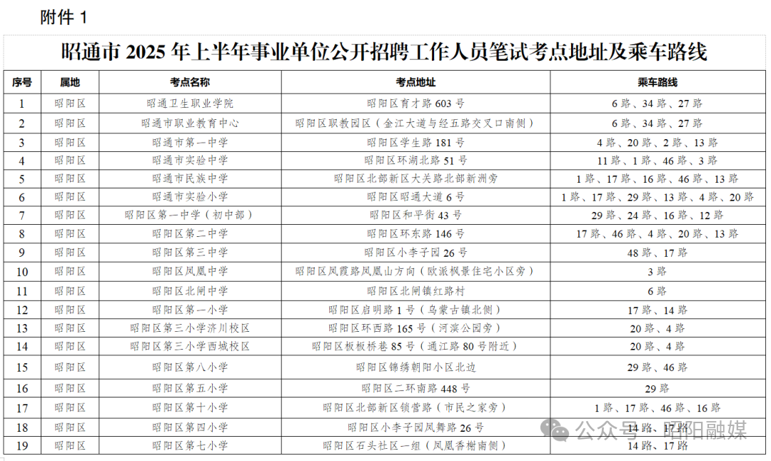附件:1.昭通市2025年上半年事業(yè)單位公開招聘工作人員筆試考點(diǎn)地址及乘車路線