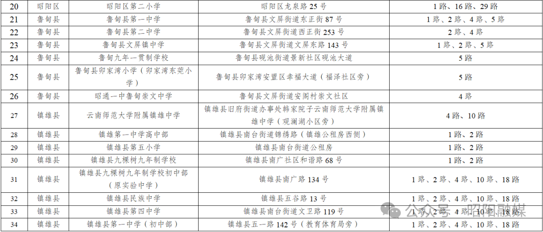 (一)在昭陽參考的考生:3月29日6:30—8:30期間,昭交集團(tuán)將增派途經(jīng)昭陽區(qū)20個考點(diǎn)方向的公交車輛。