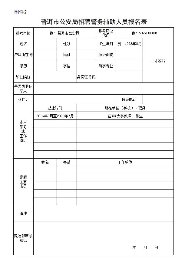 (1)普洱市公安局招聘警務輔助人員報名表;