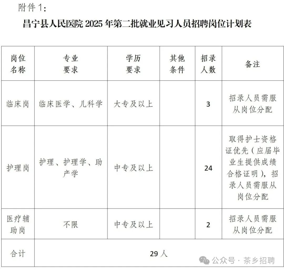 附件:1.昌寧縣人民醫(yī)院2025年第二批就業(yè)見習人員招聘崗位計劃表;