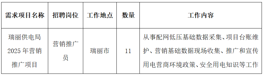 南方電網(wǎng)云南瑞麗供電局2025年項(xiàng)目制用工招聘公告