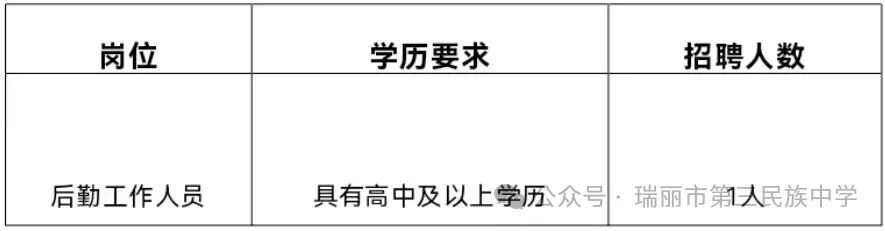 瑞麗市第三民族中學(xué)因辦學(xué)發(fā)展需要,現(xiàn)面向社會(huì)公開招聘編外聘用人員。現(xiàn)將相關(guān)招聘事項(xiàng)通告如下: