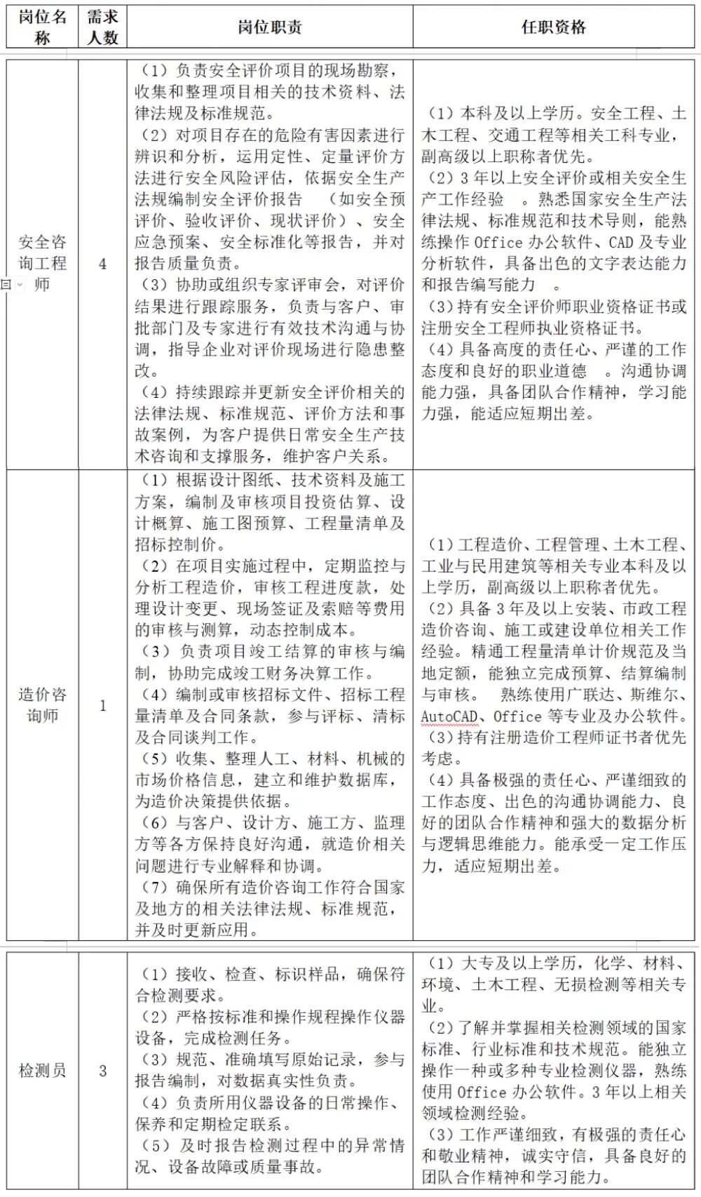 以下崗位面向社會公開招聘: