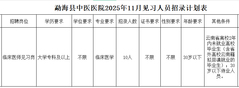 勐海縣中醫(yī)醫(yī)院2025年見(jiàn)習(xí)崗位招聘公告