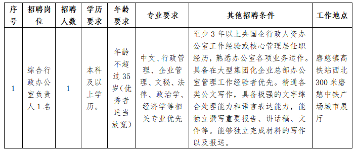 此次面向社會公開招聘綜合行政辦公室負(fù)責(zé)人1名,采取勞務(wù)派遣方式與我公司簽訂勞動合同,派遣至云南磨憨站城城市開發(fā)有限公司工作。