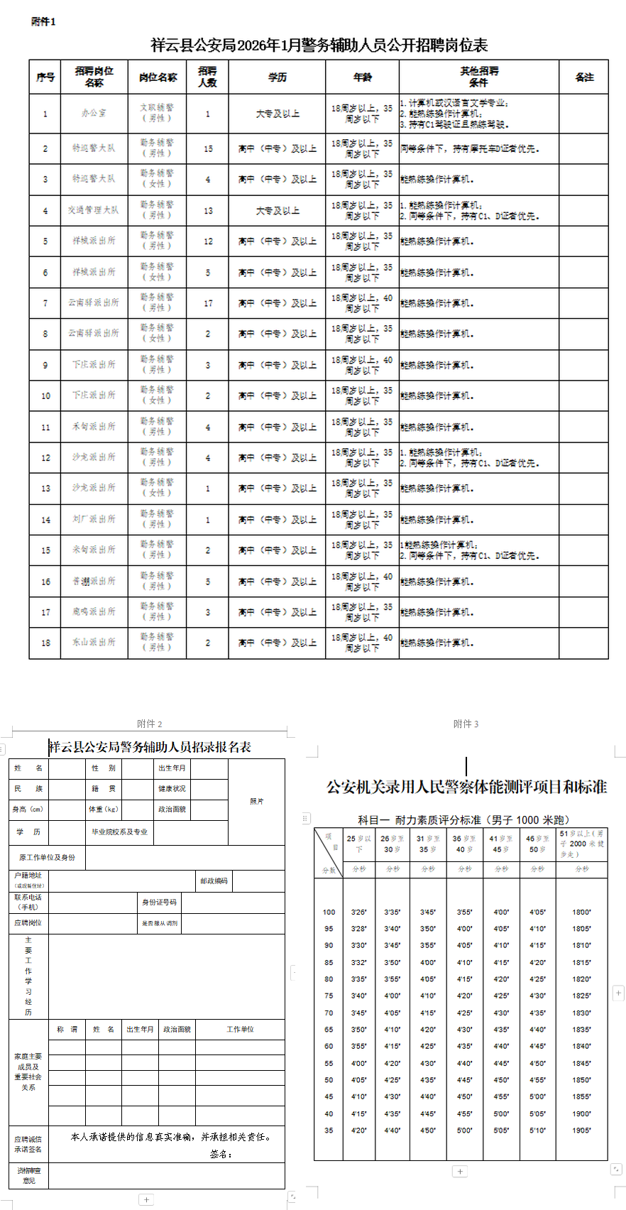 (1)《祥云縣公安局警務(wù)輔助人員招錄報名表》1份(附照片);