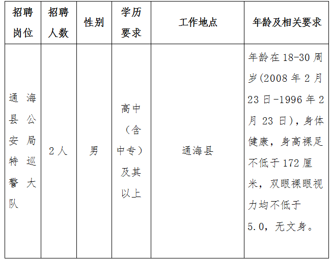 報(bào)名方式:2026年2月23日至2月28日08:30—11:30;14:30—17:00期間到通海縣公安局特巡警大隊(duì)填寫報(bào)名表。