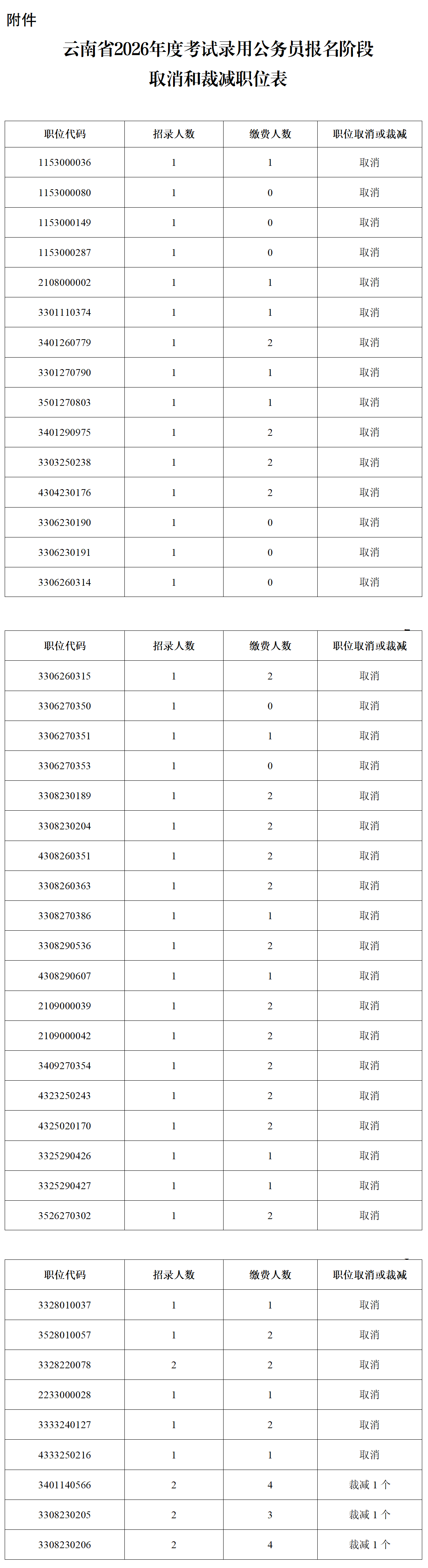 附件:云南省2026年度考試錄用公務(wù)員報(bào)名階段取消和裁減職位表
