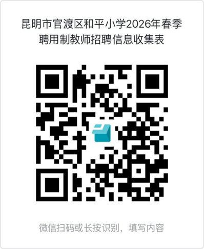 (二)報(bào)名方式:本次招聘報(bào)名采取網(wǎng)絡(luò)報(bào)名的方式進(jìn)行,應(yīng)聘人員須在規(guī)定時(shí)間內(nèi)掃描公告末尾二維碼進(jìn)行網(wǎng)絡(luò)報(bào)名,按《昆明市官渡區(qū)和平小學(xué)2026年春季聘用制教師公開招聘公告》報(bào)名要求填寫各項(xiàng)信息。網(wǎng)絡(luò)報(bào)名時(shí)間截至3月1日下午18:00。