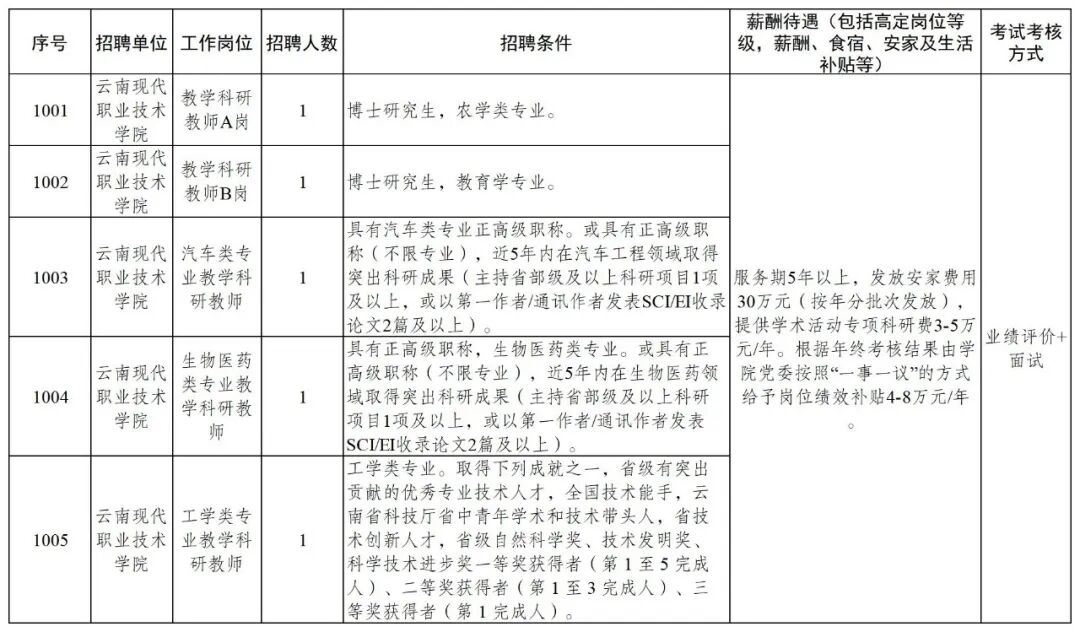 云南現(xiàn)代職業(yè)技術學院2026年高層次人才招聘公告