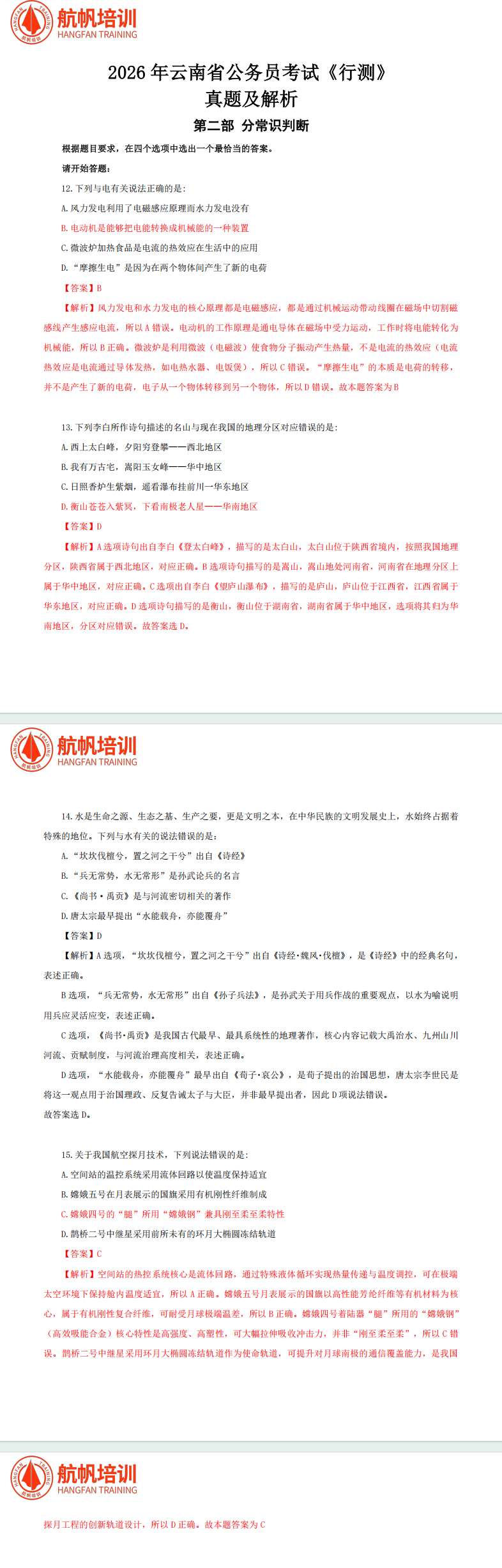 云南2026省考筆試考生回憶版試題實時整理更新!