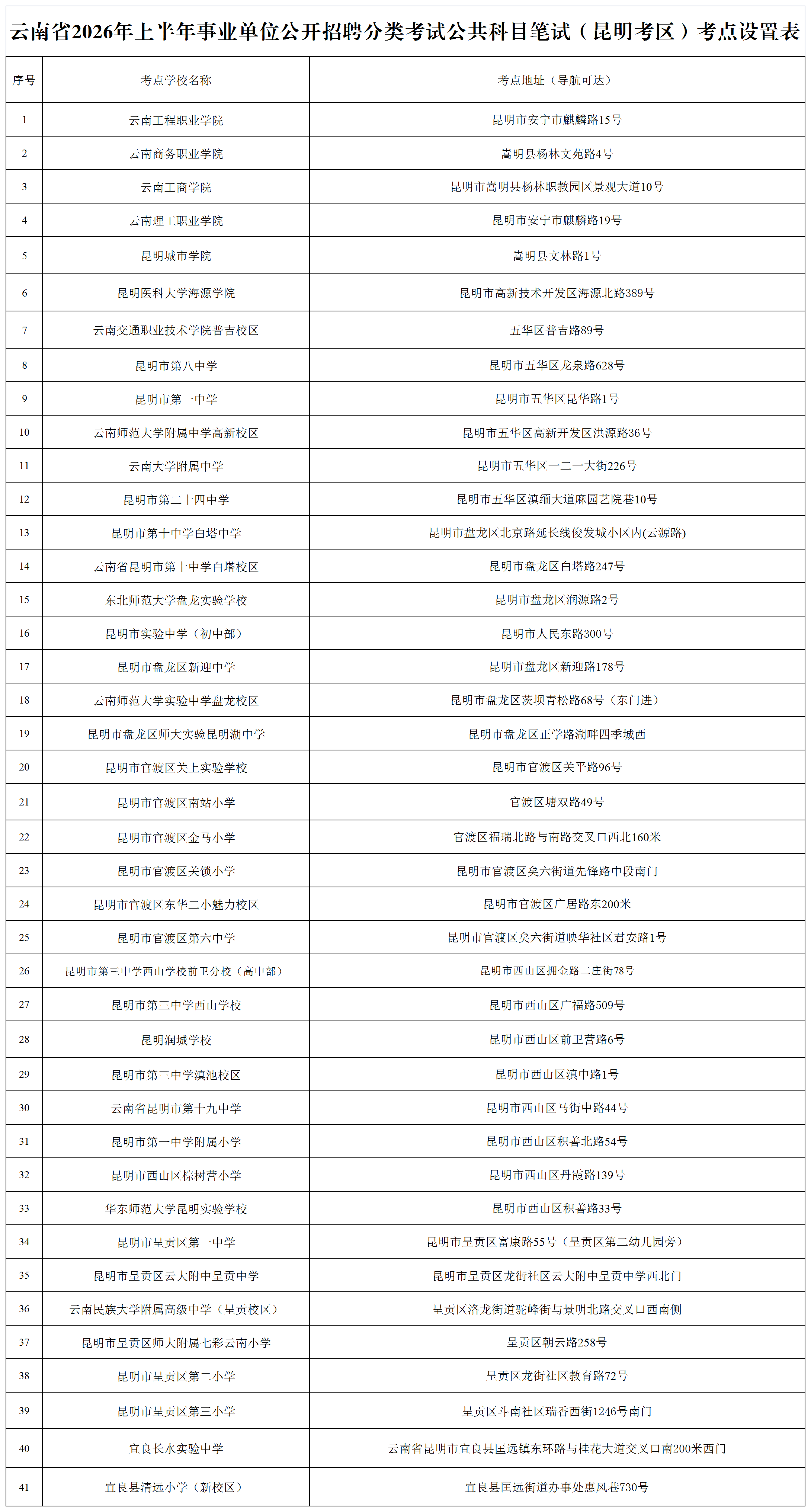 云南省2026年上半年事業(yè)單位公開招聘分類考試公共科目筆試