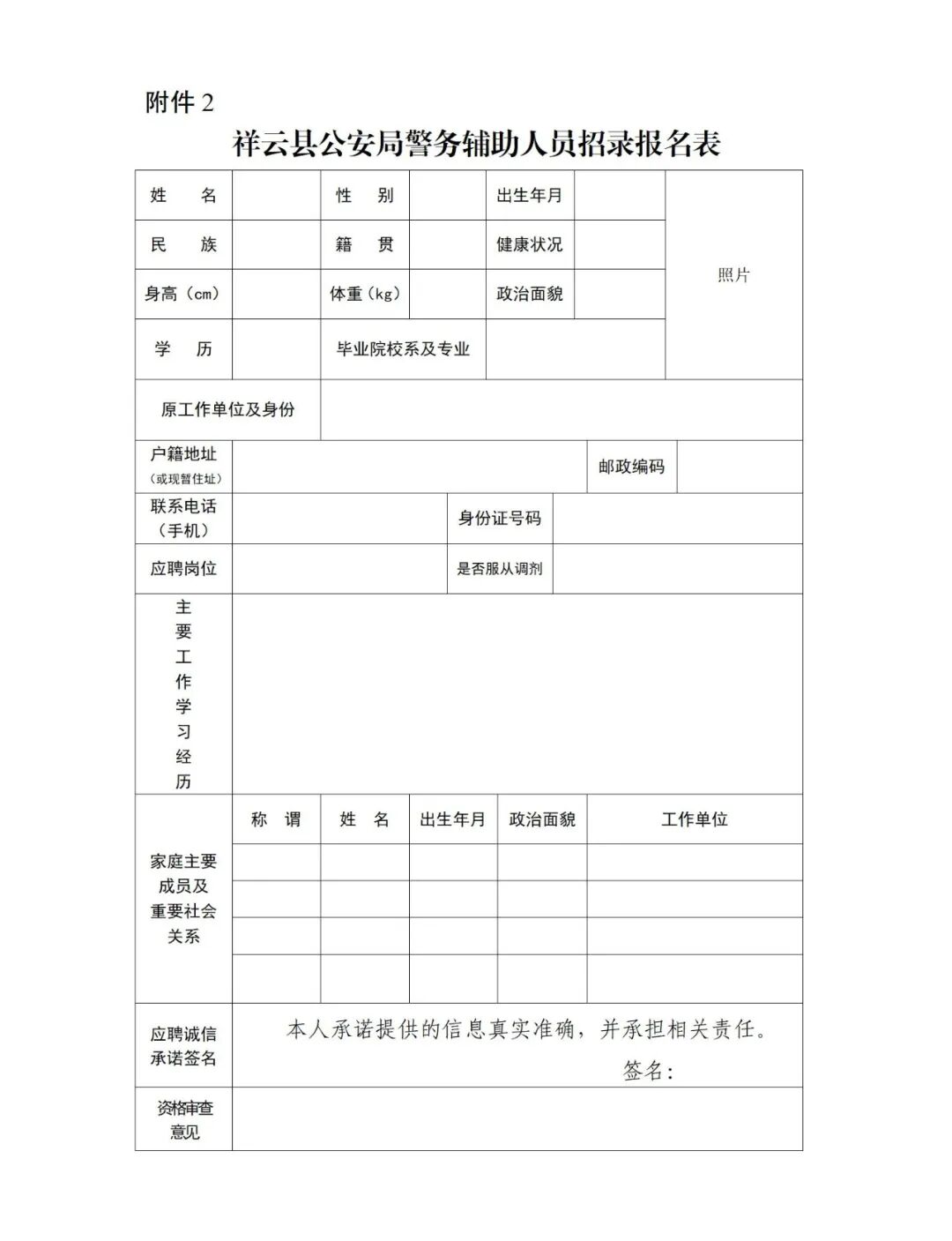 2.《祥云縣公安局警務(wù)輔助人員招錄報名表》
