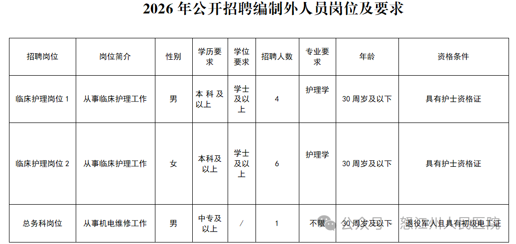 5.符合公開(kāi)招聘崗位要求的其他條件(具備招聘崗位所需的任職資格、執(zhí)業(yè)(職業(yè))資格及技能要求);