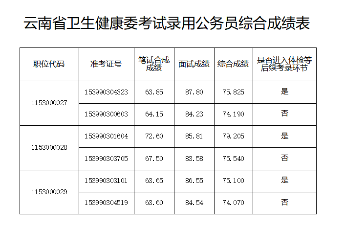 附件:云南省衛(wèi)生健康委考試錄用公務(wù)員綜合成績(jī)表