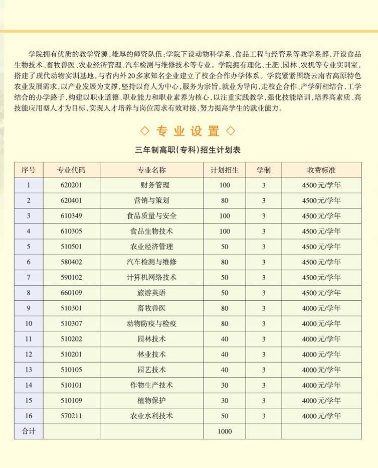 大理農(nóng)林職業(yè)技術(shù)學(xué)院2019年分專業(yè)錄