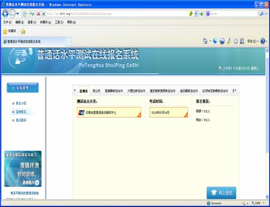 第二步:點(diǎn)擊上圖中“我要報(bào)名”選擇云南省普通話培訓(xùn)測試中心進(jìn)行報(bào)名。