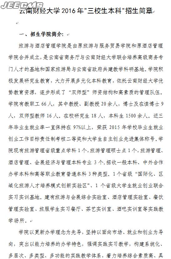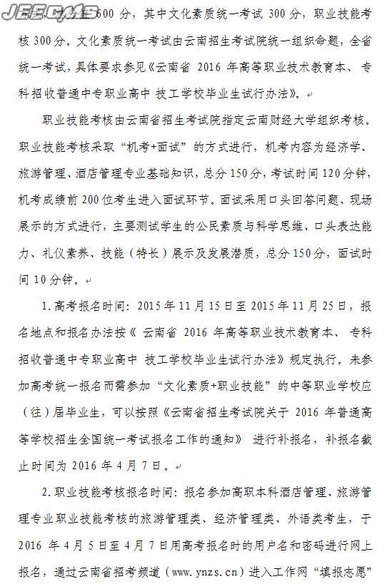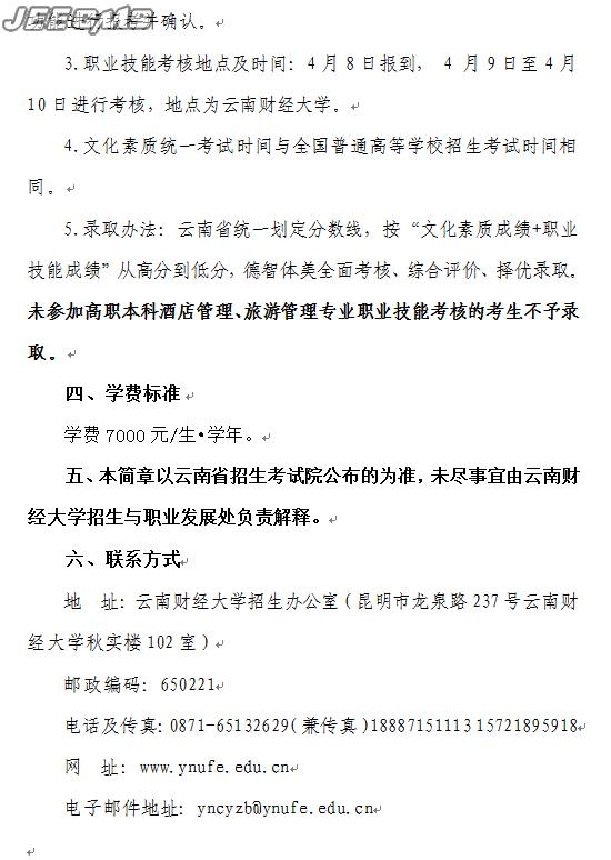 云南財經(jīng)大學旅游與酒店學院2016年三校生招生簡章