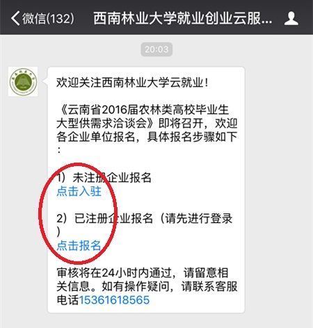 step1:關(guān)注西南林業(yè)大學(xué)就業(yè)創(chuàng)業(yè)云服務(wù)平臺(tái)