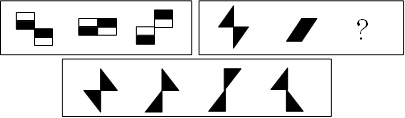 每道題給出一套或兩套圖形,要求應(yīng)試人員通過(guò)觀察分析,找出圖形排列的規(guī)律,選出符合規(guī)律的一項(xiàng)。