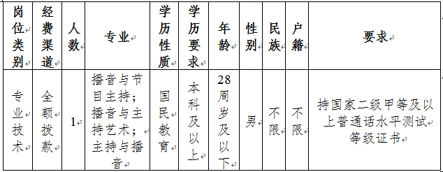 經(jīng)鎮(zhèn)沅縣文體廣電旅游局研究,報鎮(zhèn)沅縣人民政府和普洱市人力資源和社會保障局批準(zhǔn),鎮(zhèn)沅縣廣播電視臺公開招聘電視播音(主持)工作人員1名?,F(xiàn)將招聘有關(guān)事項公告如下: