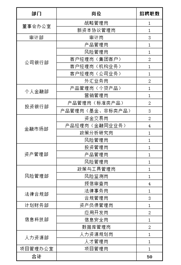 四、崗位職責(zé)與任職資格(詳見我行官網(wǎng)的招聘公告信息)